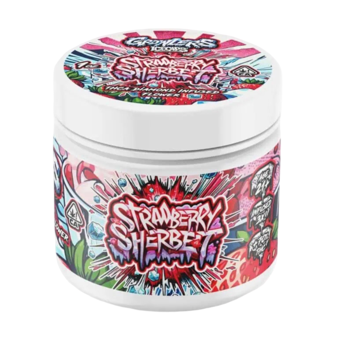 Growlers Icecaps Strawberry Sherbet delivers premium cannabis flower with a sweet, creamy terpene profile, smooth smoke, and potent effects, making it a top-quality choice for flavor-focused connoisseurs.